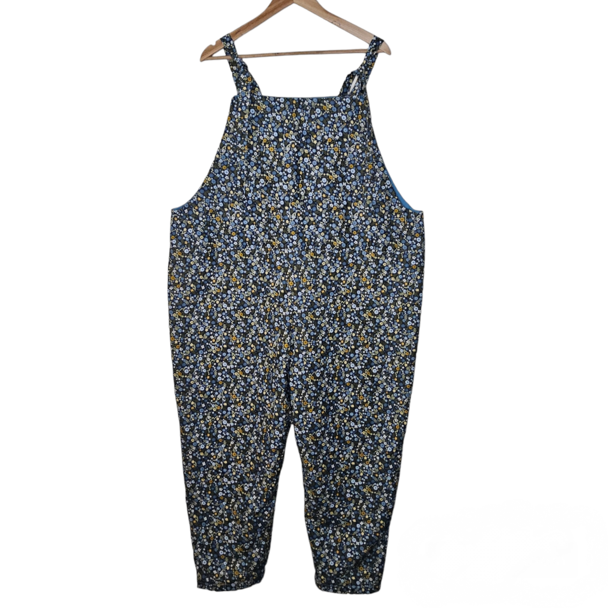 Made from reclaimed fabric, these gorgeous floral dungarees are made to order. They are super soft being 54% cotton and 46% viscose/rayon. The top half is lined also with reclaimed fabric.