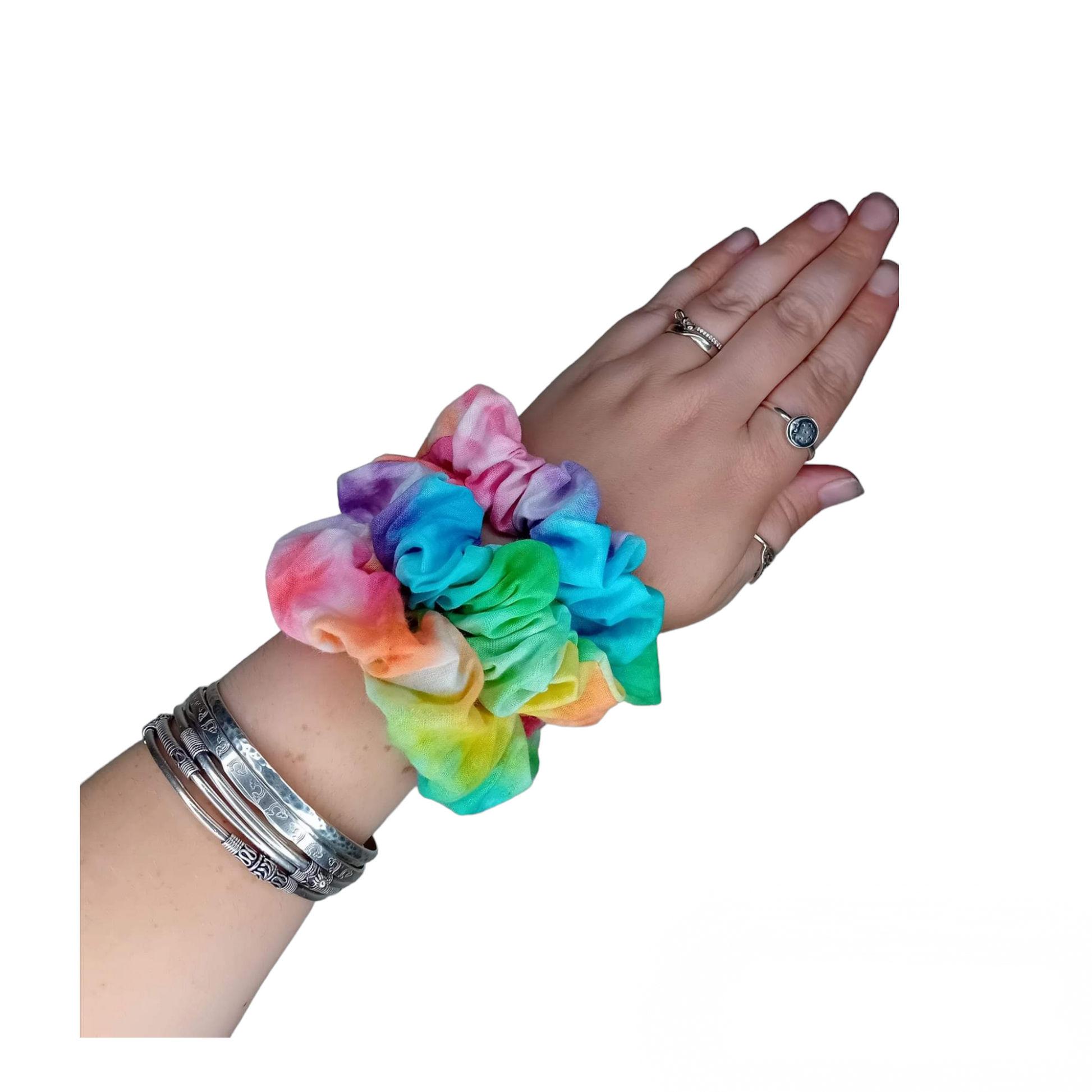 Made using recycled fabric saved from landfill, these scrunchies have been hand tied, dyed and sewn by me.