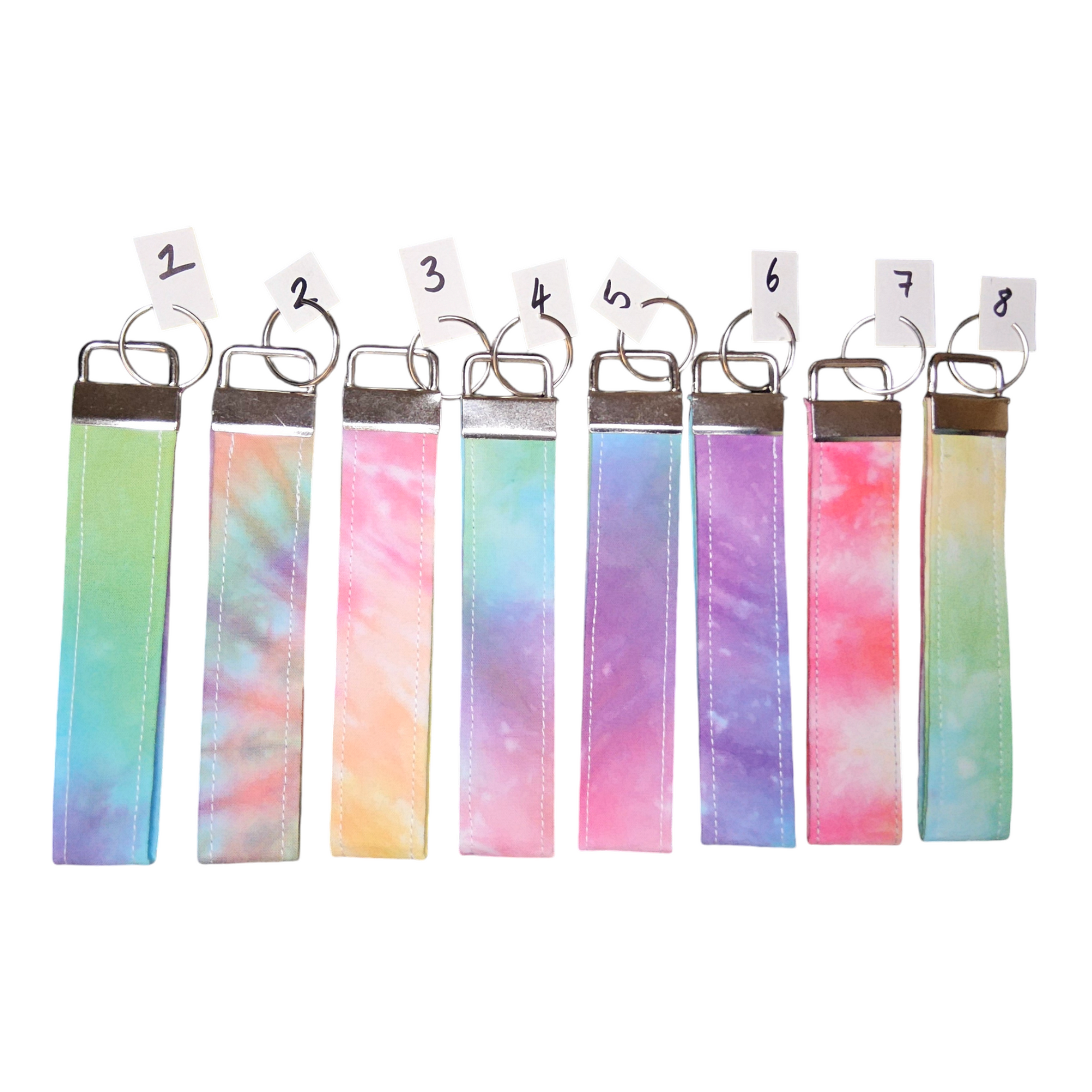 Made from scrap fabric, these keyrings measure 5.5 inches long (not including the ring) and 1 inch wide.